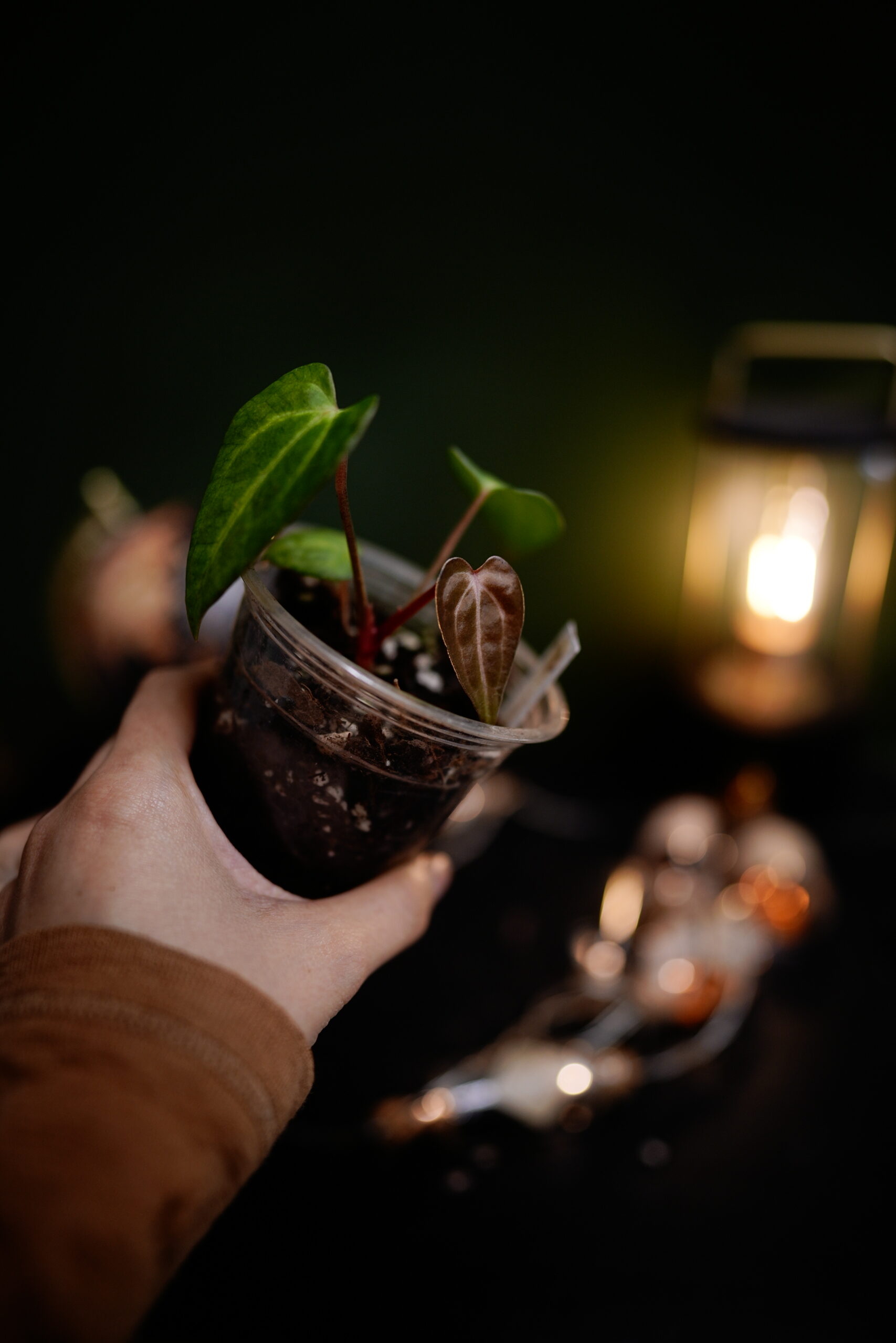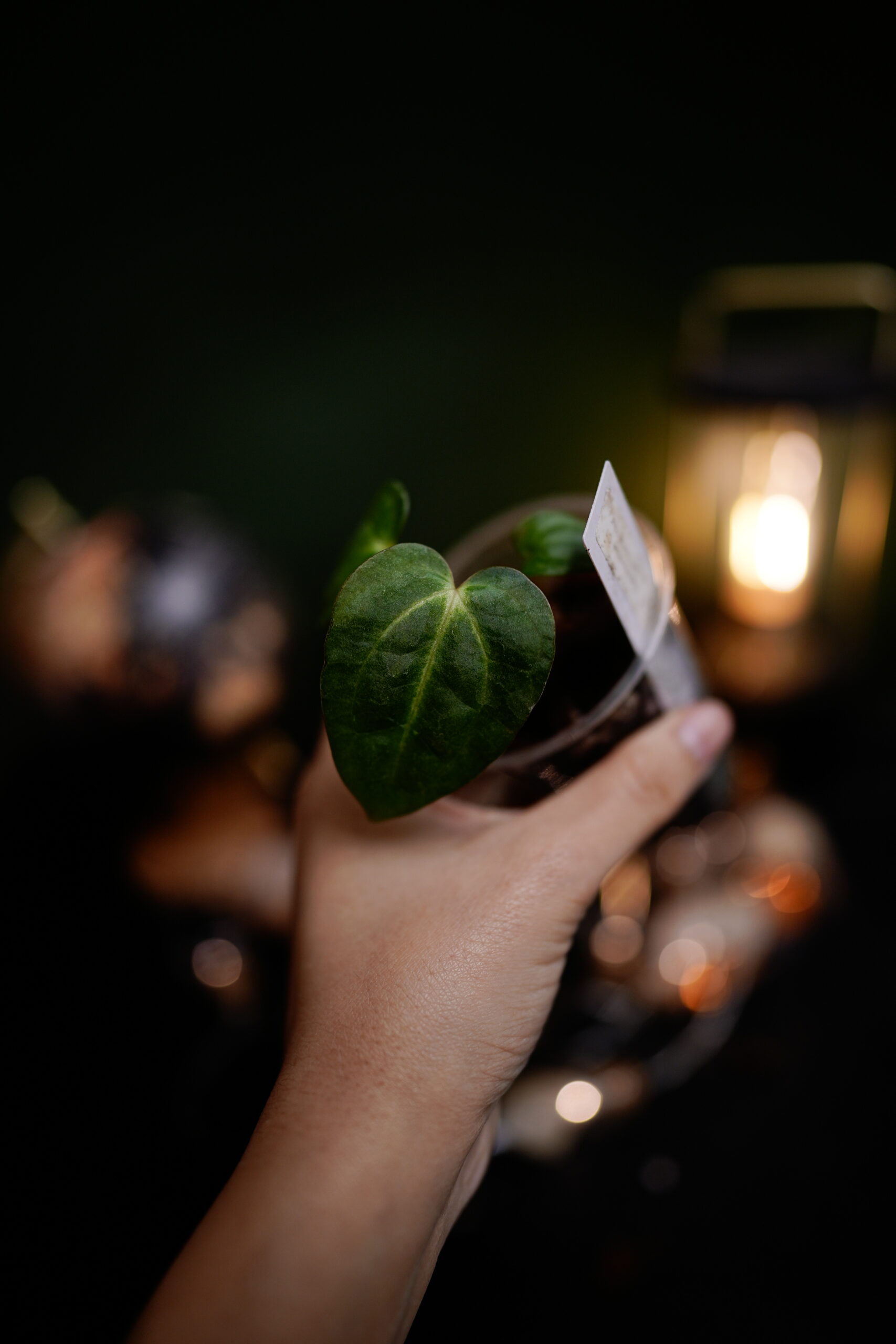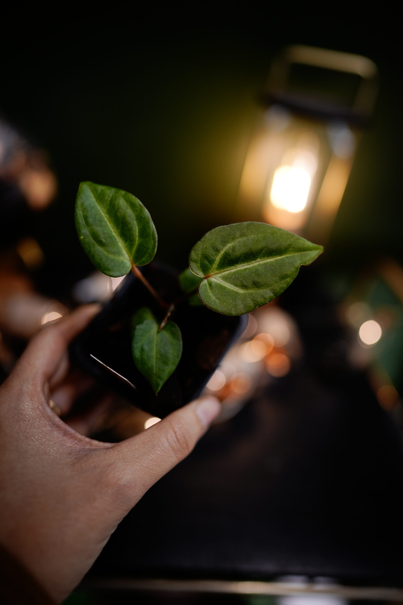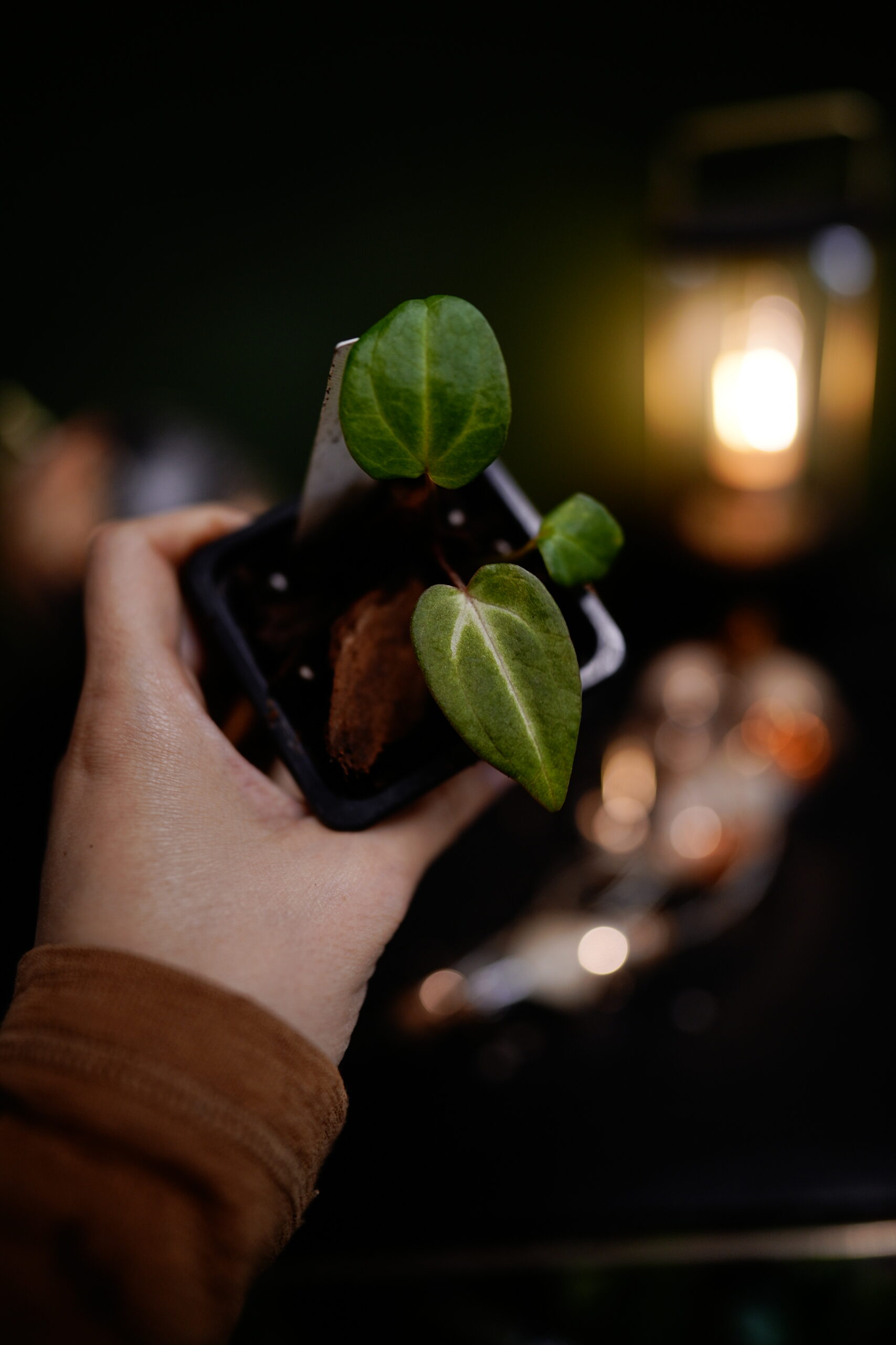 Un Anthurium Carlablackiae C1 (self), descendant direct (auto-polinisation) de ma plante mère Carlablackiae C1, connue pour son feuillage noir profond et velouté parcouru de nervures blanches spectaculaires.