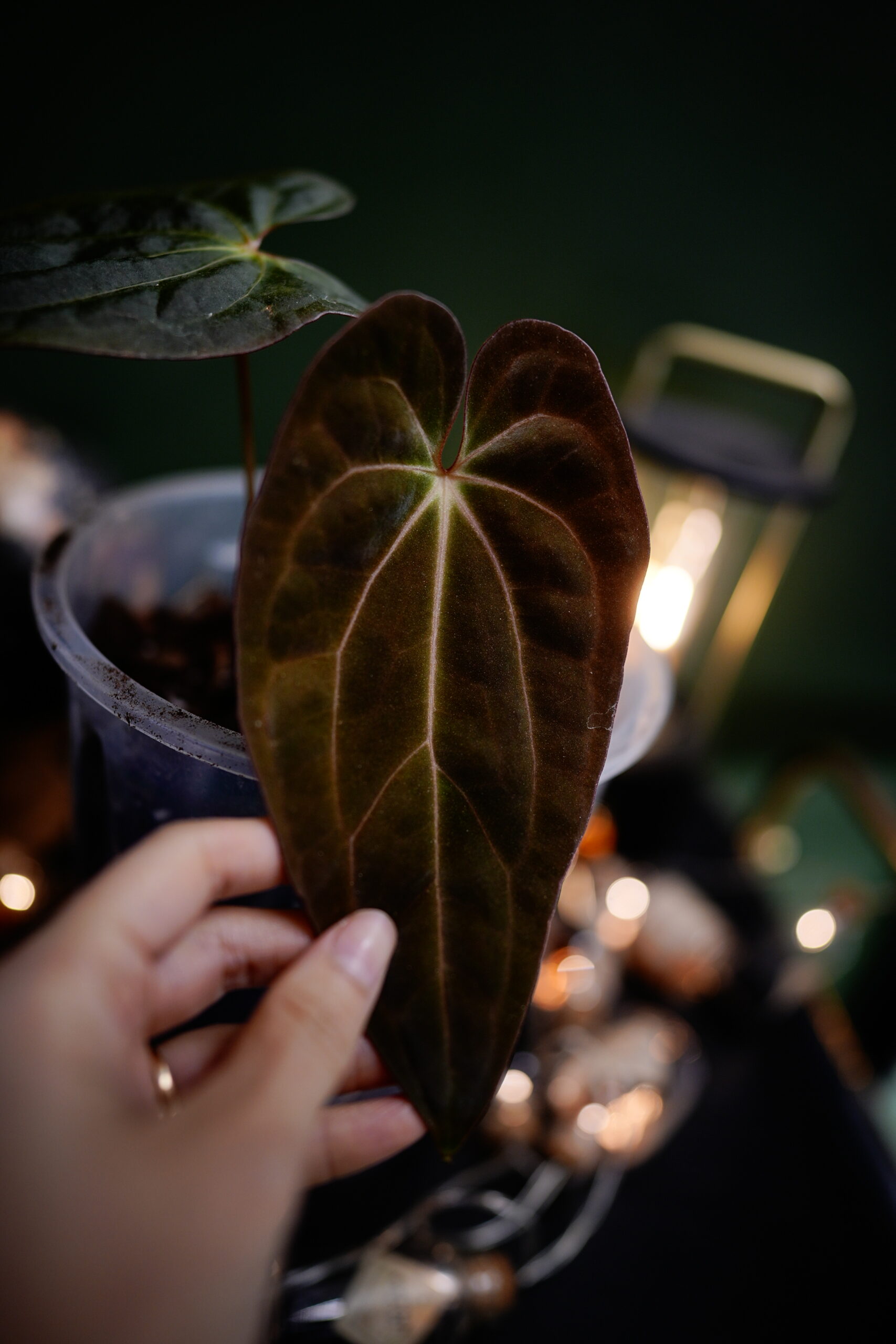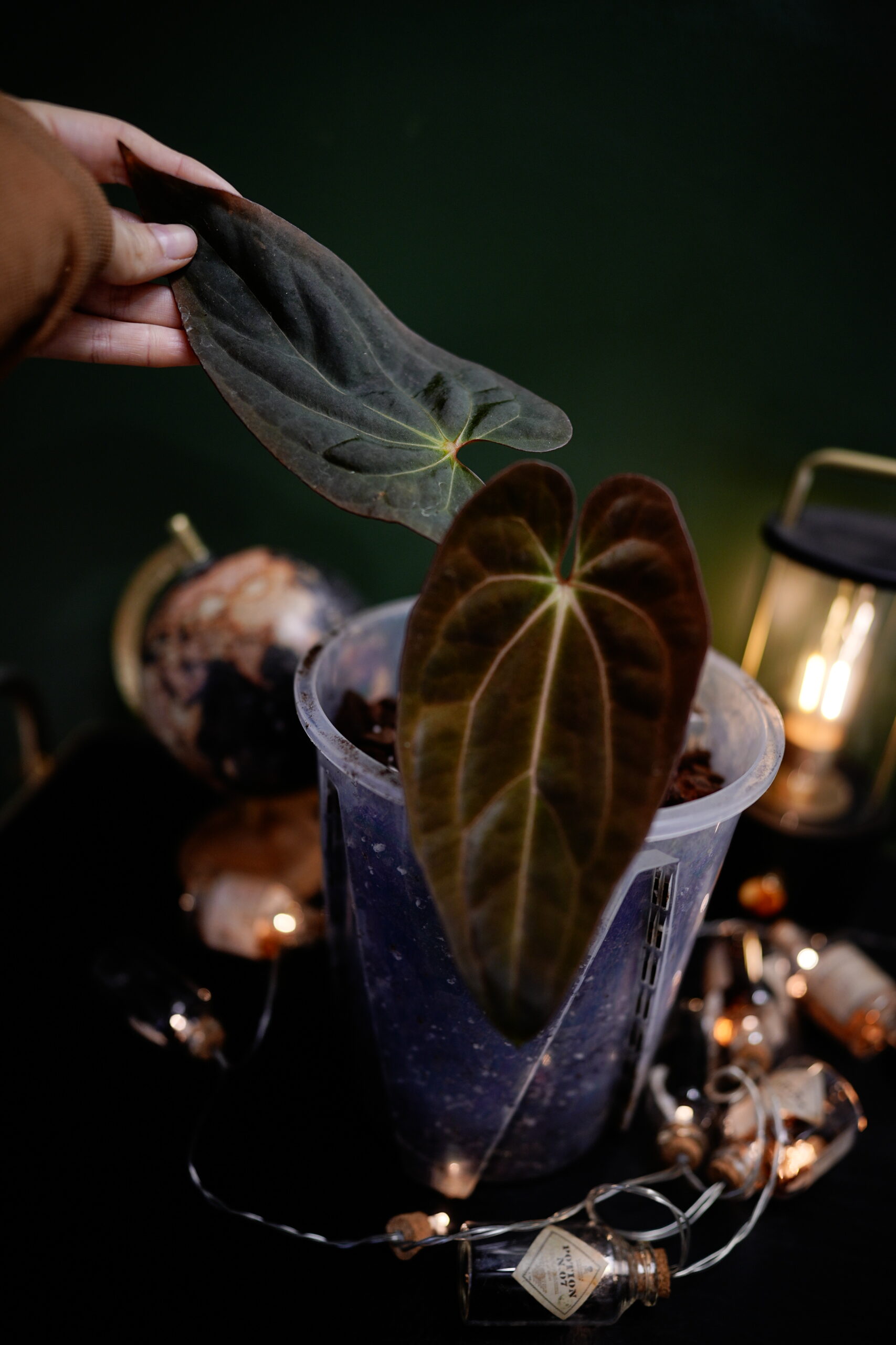 Ce spécimen est un Anthurium Papillilaminum X-one (clone) célèbre clone qui a vu le jour en Indonésie. Un must have dans une collection. L’émergence de la feuille offre un spectacle splendide en passant d’un rouge vif velours éclatant à un noir sombre profond.